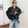 2 reviews for Vintage PU Leather Bomber Jackets 2025 Autumn New Ladies Zipper Lapel Long Sleeve Pocket Coat With Belt Women’s Loose Streetwear – AliExpress