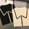 Home / Women Fashion Black White Patchwork Polo Shirts Summer Casual Loose Short Sleeve Knit T-shirt Office Lady Chic Button Pullovers – AliExpress