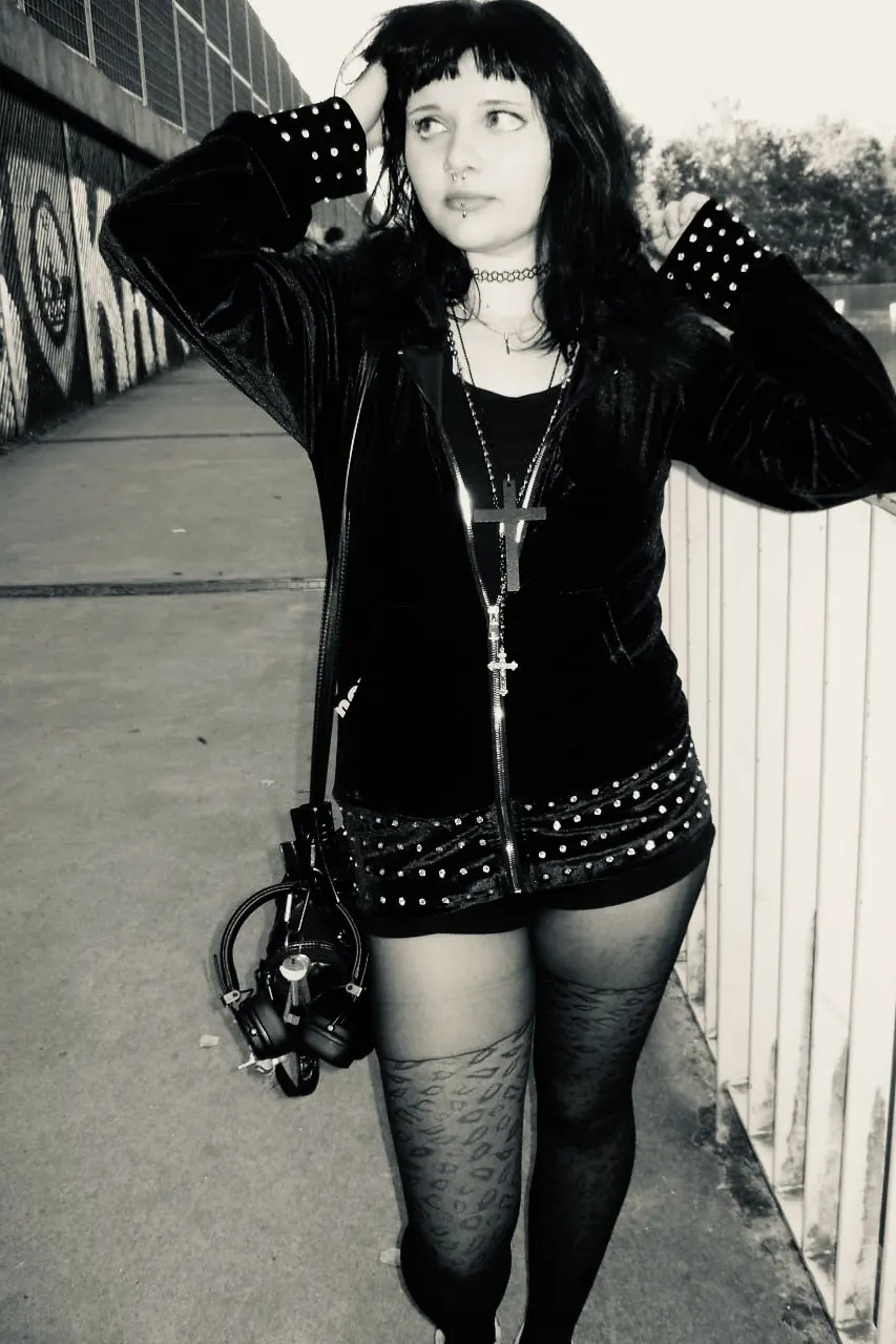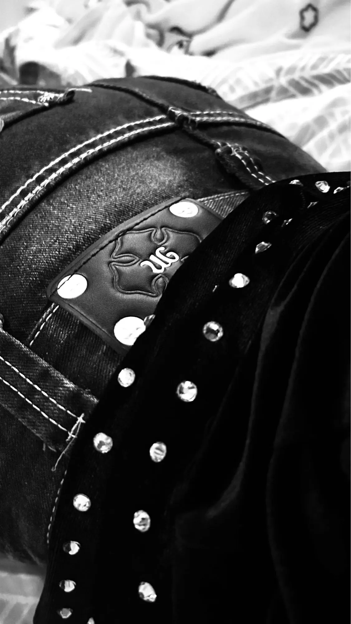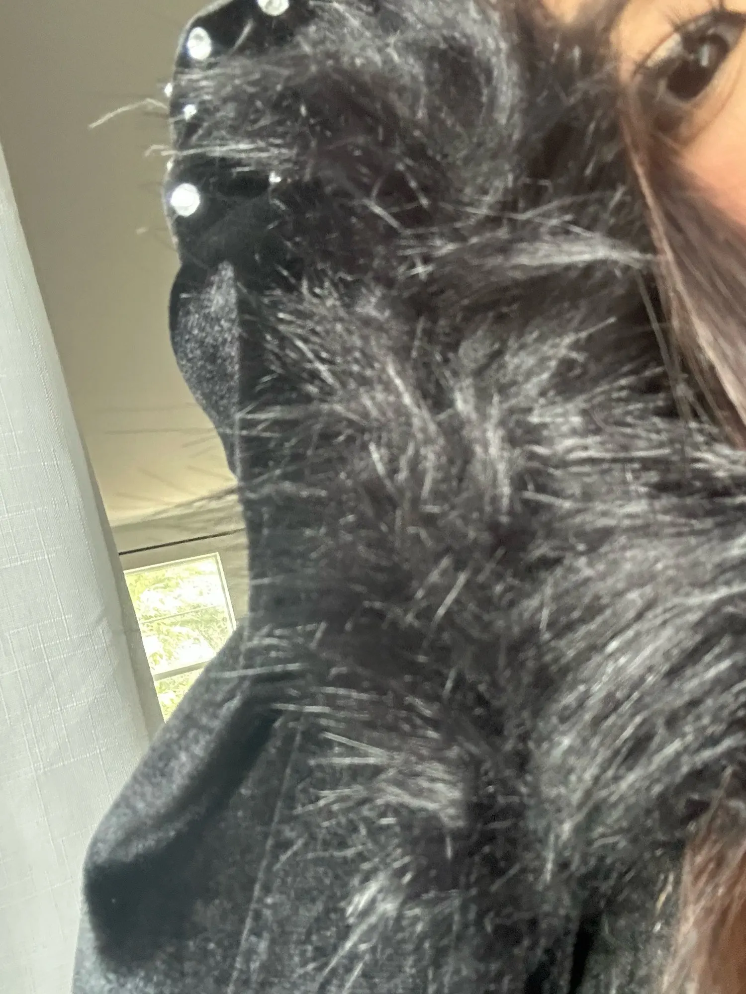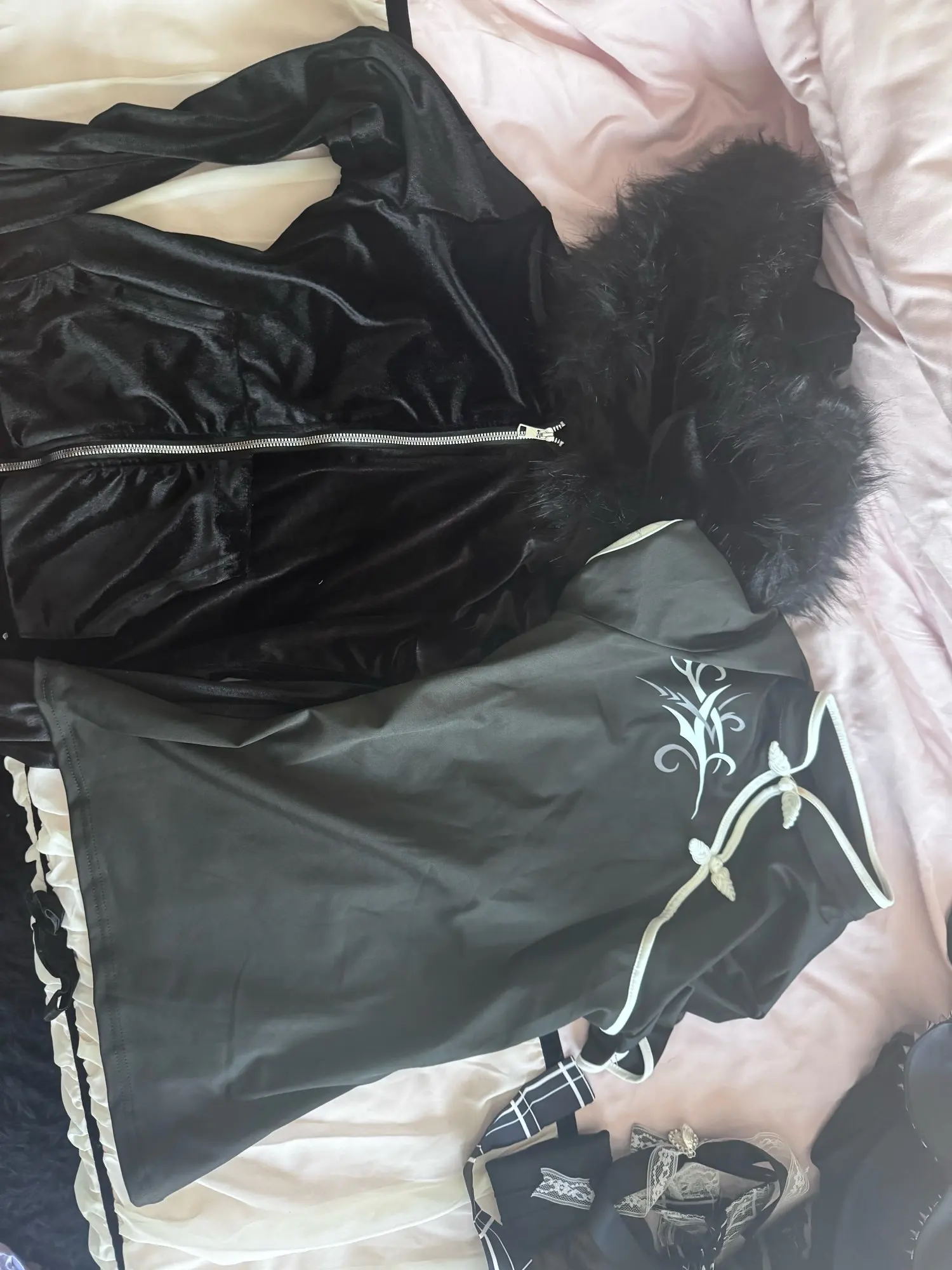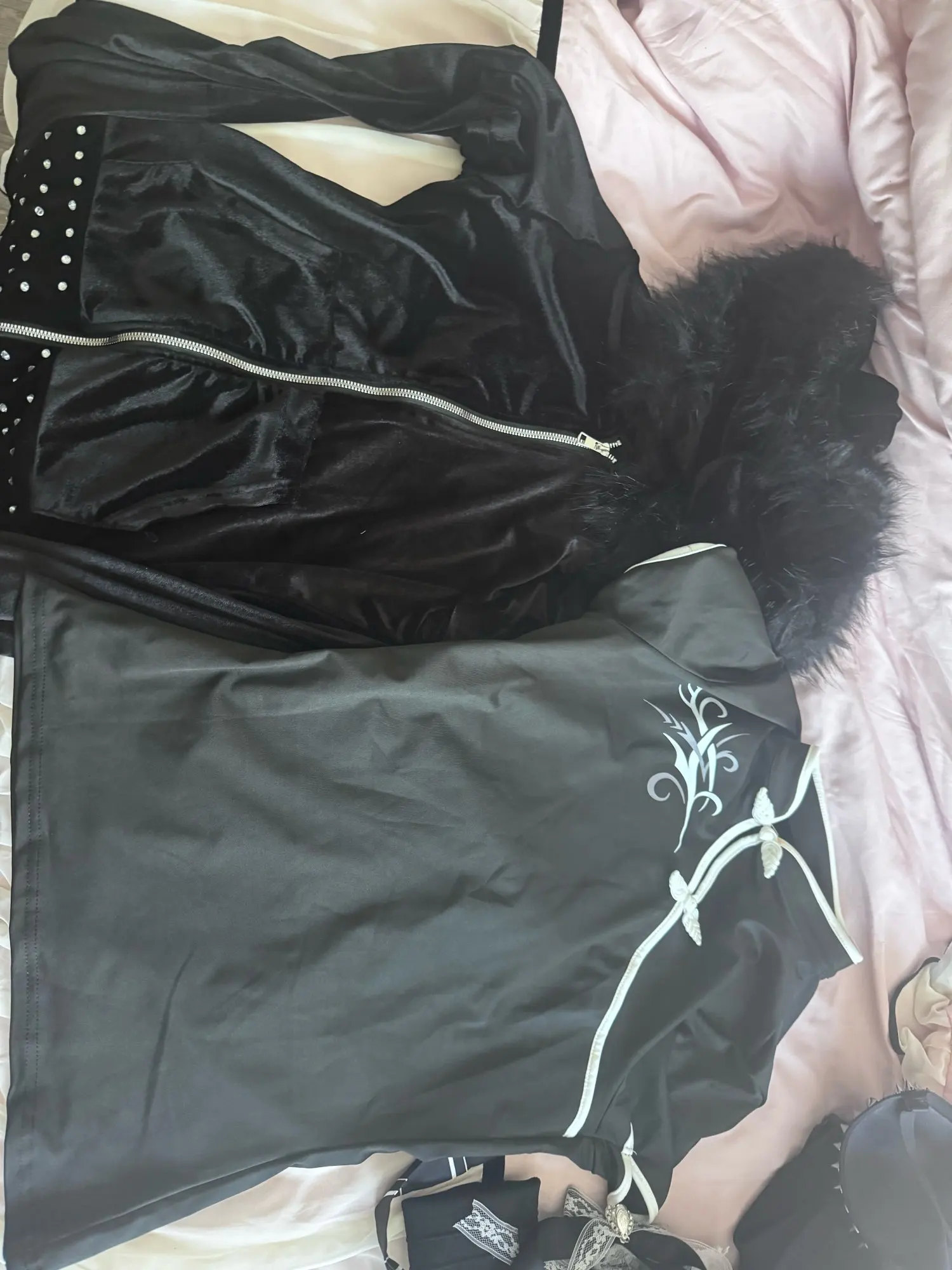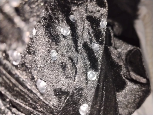 I didn’t really see the same material in the picture as irl, it’s velvety and looks cheap. Also, the white things on the picture are gemstones.