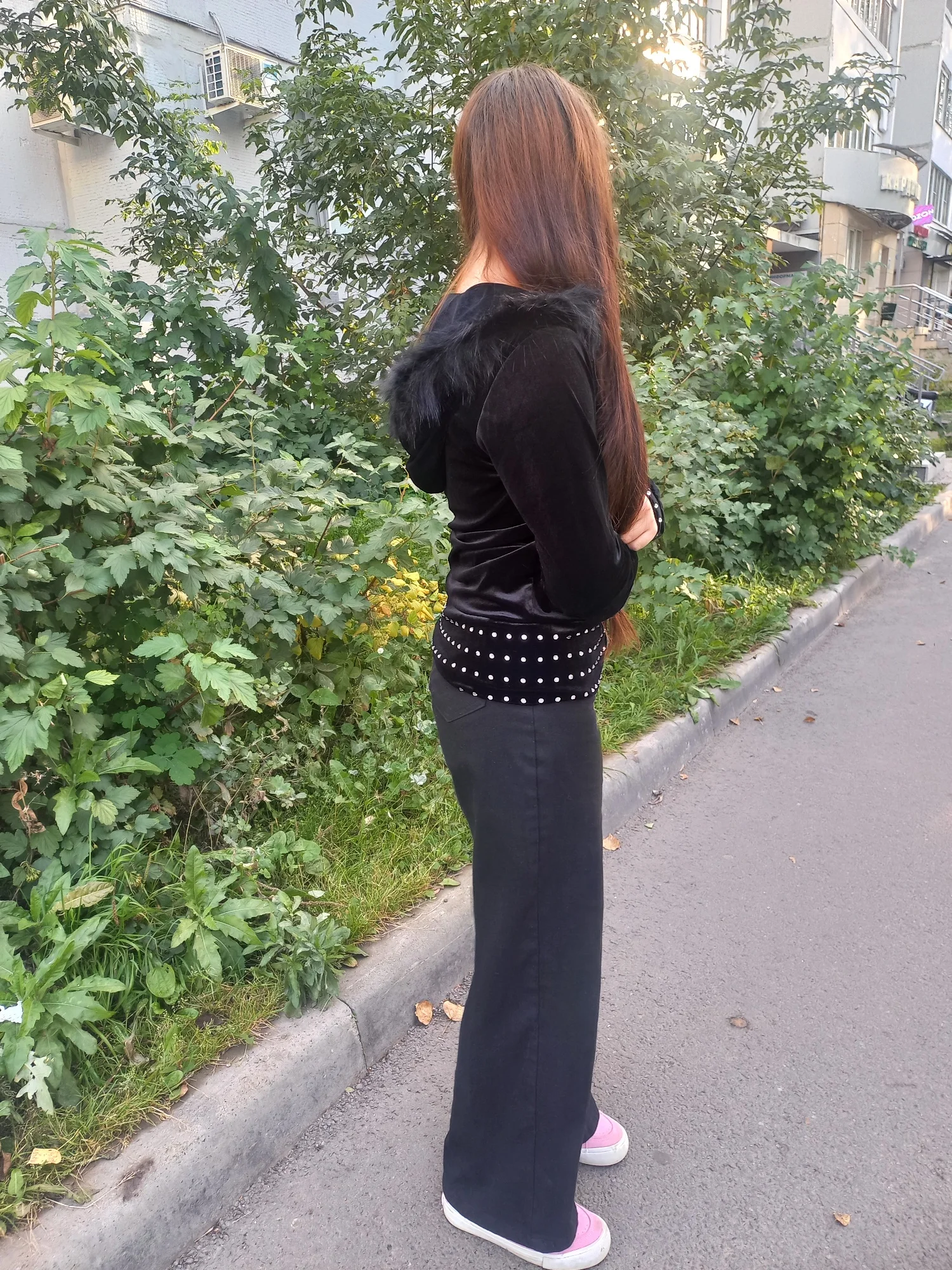 Thin, suitable for summer. For height 161 took size S, everything is fine. The rhinestones are glued securely. A nice little blouse.