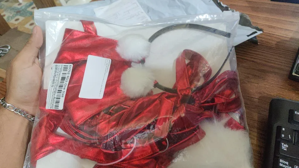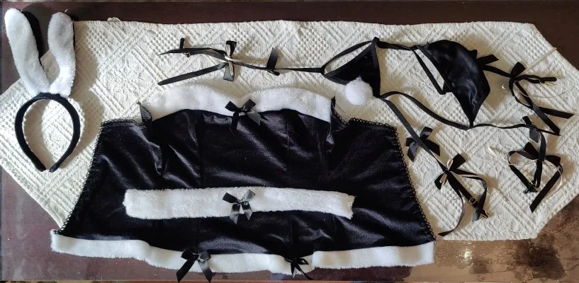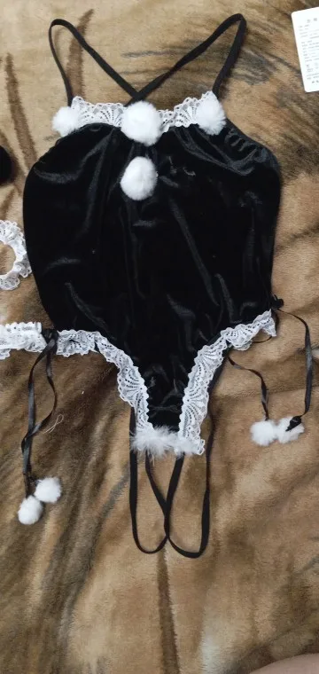 The stitching is horrible, the bodysuit is not the one in the photo, the neck part is too big, it’s unstitched, and the ribbon doesn’t look like ribbon at all; one of the gloves is also unstitched. Furthermore, it is completely translucent and has threads hanging everywhere.