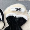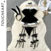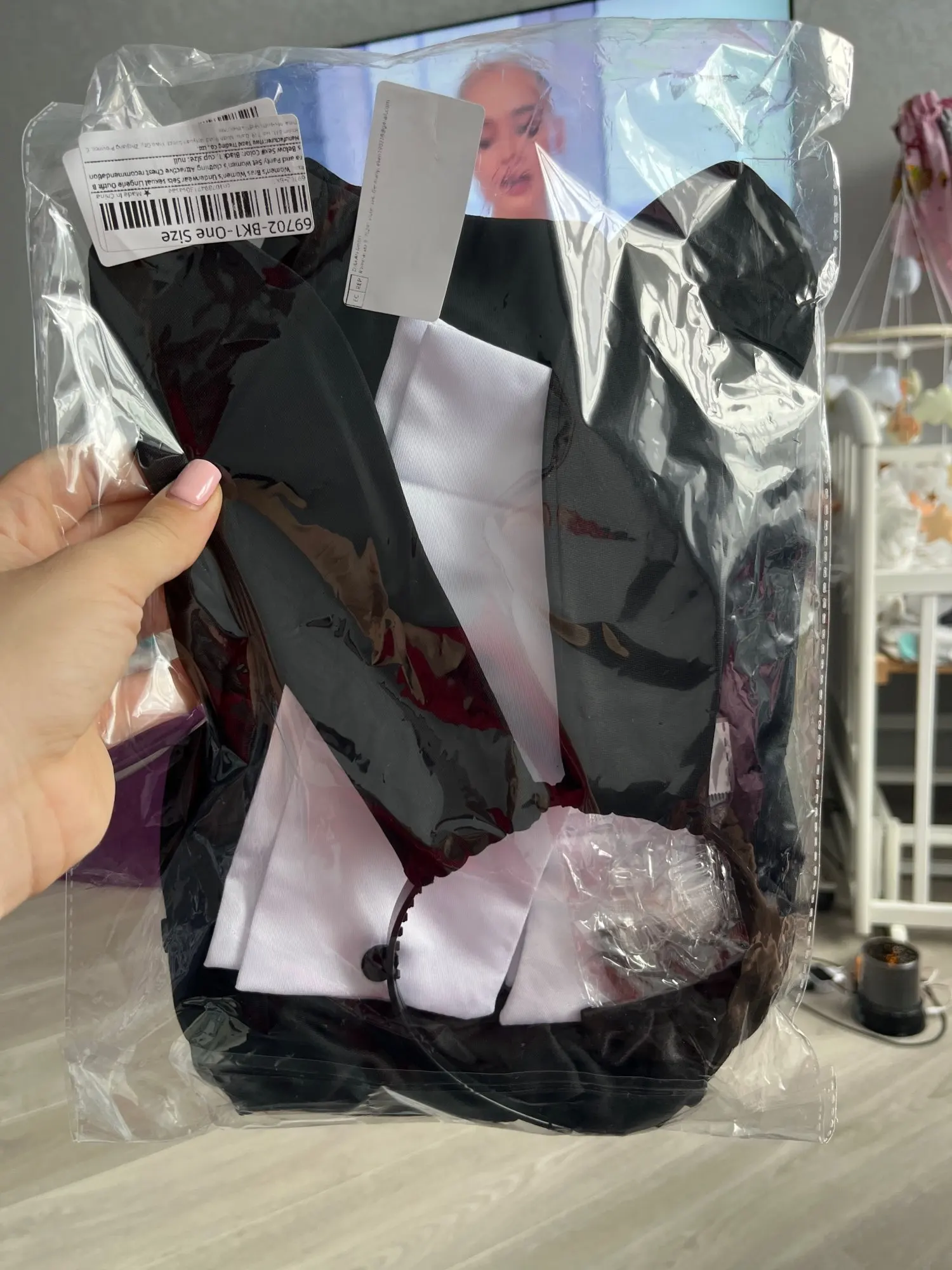 Looks great! It arrived quickly, the set includes transparent straps, thanks to which it holds perfectly (without them, it doesn’t hold at all – there are no cutters). The bodysuit is one-piece (some parts are loose at the bottom – no), the downside is that the neck bow is too big, as seen in the photo, and they didn’t add elastic bands on the arms, that’s why I’m giving it a minus.